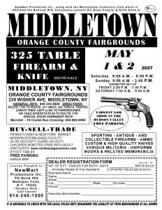 MIDDLETOWN, NY FIREARM AND KNIFE SHOW 2027 Download PDFOnce you download the PDF – To print the downloaded PDF: Hold down the “Ctrl” Key and hit the “P” key SOME PICTURES FROM MIDDLETWON SHOWS Hourly Schedule 1st May (Saturday) 9:00 AM - 5:00 PM 2nd May (Sunday) 9:00 AM - 3:00 PM Search Recent Posts THIS IS WHAT IS HAPPENING