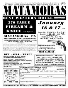 MATAMORAS, PA FIREARM AND KNIFE SHOW 2027 Download PDFOnce you download the PDF – To print the downloaded PDF: Hold down the “Ctrl” Key and hit the “P” key MATAMORAS 2023 Hourly Schedule 16th January (Saturday) 9:00 AM - 5:00 PM 17th January (Sunday) 9:00 AM - 3:00 PM Search Recent Posts THIS IS WHAT IS HAPPENING